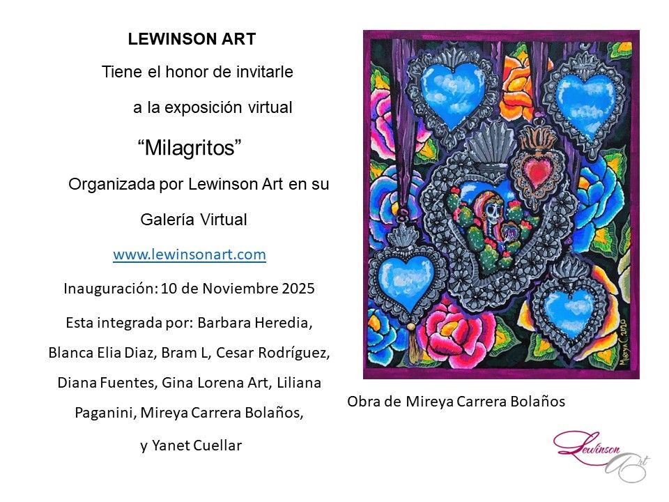 Están cordialmente invitados a visitar la exposición virtual de "Milagritos", organizada por Lewinson Art y que pueden visitar en mi galería virtual.
